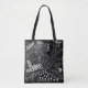 Bolso tote rústico boho negro y blanco con patrón de peces caprichosos. Por Julie Nicholls©.