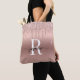 Bolso elegante y glamoroso con brillo en rosa palo y dorado, con goteo metálico y monograma inicial personalizado en tipografía de letra manuscrita con florituras (o caligrafía). Este diseño presenta tu nombre en una bonita tipografía de letra manuscrita con cola de florituras, monograma inicial en rosa palo dorado con brillo metálico y borde con brillo glamoroso. Estos son fáciles de personalizar con tu nombre. Un regalo femenino ideal para cumpleaños, boda, Navidad, despedida de soltera, fiesta de cumpleaños de 16 años, fiesta de soltera o para graduación y es para la chica que le gustan las cosas con brillo y estilo.