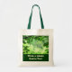 Este bolso le invita a entrar en un verde mundo de paz y serenidad. Hojas de arce oscuro enmarcan la imagen, llevando a una escena de bosques soleados con tonos amarillos, blancos y verdes del bosque. El mensaje dice: ¡Tengan un Día de la Tierra Verde! Personalizar el texto para adaptarlo a sus necesidades.