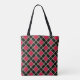 Elegante patrón de diamante en bolso Tote de cuadros negros y rojos. Este diseño tiene hilos de color sepia y un toque rústico con mosaico de diamante casi invisible sobre las rayas negras.