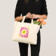 Este adorable tote está decorado con flores blancas de fondo rosa claro y elegantes letras que personalizan el momento.