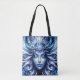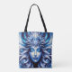 Fun Women Power Tote Bag for Shopping - Goddess Celestial Blue Head January - Este hermoso contenido generativo digital Design muestra la cabeza de una mujer hermosa con los ojos cerrados y el pelo largo que fluye en el fondo es el universo celeste divino. Los colores principales de esta pieza Art son diferentes en tonos azules y blancos. Esto hace un buen regalo para usted y para sus amigos y familia. Un lado es el personalizable, sólo personalizar el texto - AMOR y PAZ - a su gusto o borrarlo.
