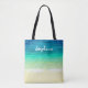 Crea un bolso de tote personalizado personalizado en diseño de playa tropical con océano azul y arena.