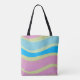 Bolsa de Tote con diseño moderno amarillo rosado monogramada por © Cathy Thompson. Tonos azules, rosas y amarillos vivos. Patrón abstracto en esta bolsa única. He configurado la plantilla para que añada sus propias iniciales, nombre o dicho. No hay necesidad de ser experto en tecnología. ¡Muy fácil!