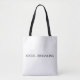 Distancia social blanco y negro elegante simple y divertido Bolsa Tote. Texto en serif negro sobre fondo de color sólido plano blanco.