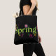 Este diseño divertido y fabuloso presenta el texto "Primavera" en verde rodeado de espirales y decoraciones florales. Perfecto para un regalo de dama de honor o simplemente una bolsa para llevar contigo.