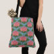 Una bolsa de té muy moda, con un patrón de Nieves de Agua rosa y Dragonflies azul pálido, sobre un fondo azul claro. De un diseño de collage de papel pintado a mano por Judy Adamson. Como parte de la colección "Lily Pond" de Posh & Painterly, se puede personalizar fácilmente este patrón rotando o redimensionando el mosaico de imágenes y este diseño se puede ajustar para que se ajuste a cualquier opción de Tote Bag.