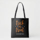 Celebre Halloween con estilo con esta bolsa de tote de caramelo "truco o vístete" con letras modernas de escritura naranja y acentos de estrellas blancas. Personalice el texto del monograma del personalizado con un nombre individual o un apellido.