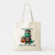 Recopile todas sus golosinas de Trick o Treat esta Halloween en este elegante tote reutilizable, con un lindo dinosaurio. En un disfraz de Frankenstein lleva una calabaza. Todo el texto es personalizable para satisfacer sus necesidades.
