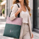 A play of dusty pink and deep teal green sets the tone for this fashion‑forward tote, where two of the season’s most trendy colors meet in a bold, feminine contrast. The surface is wrapped in an elegant lace‑pattern texture, giving the bag a refined, romantic feel, delicate enough to look couture, yet strong enough for everyday style. A sleek belt‑inspired band anchors the design at the center, adding structure and a modern, boutique‑like touch.