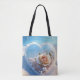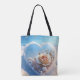 Experimente la magia del invierno con este diseño de tote de hombro, con un escudo de nieve en forma de corazón adornado con un rosa floreciente y mariposas revoloteadas, situado contra un cielo azul y nítido.