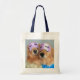 ¡Dile a alguien que estás soñando con ellos con esta linda bolsa de tote! Design incluye una fotografía de dos perros recuperadores dorados que llevan pijamas y máscaras para dormir con "pestañas" negras sobre ellos.