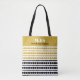 Bolso De Tela Elegant Black and Gold Pattern Initials and Name