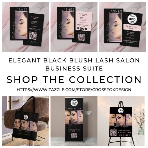 Elegant Black Blush Lash Salon Business Suite Diseñado por Lisa Crosby Artistry