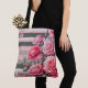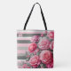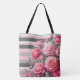 Bolso De Tela Elegant Striped Pink and Grey with Roses