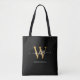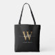 Bolsa de mano elegante simple femenina moderna negra y dorada con monograma inicial nombre personalizado. Este diseño presenta su primer nombre en un bonito estilo de letra a mano con fuente de cola swash tipografía (o caligrafía) con monograma inicial y apellido o nombre completo en dorado y blanco sobre fondo negro. Gran regalo femenino para cumpleaños, boda, Navidad, despedida de soltera, fiesta de cumpleaños de dulces 16, fiesta de soltera o para graduación y es para la chica que le gustan las cosas limpias minimalistas.