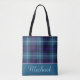 Bolso de mano elegante con script de nombre personalizado de cuadros escoceses azules