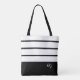 El diseño contemporáneo elegante presenta una mezcla de bandas gruesas y rayas finas en blanco crujiente y negro sofisticado moderno. Agrega dos o tres iniciales con monograma en letra cursiva blanca elegante. El diseño se repite en la parte posterior. Se aceptan solicitudes de colores personalizados.