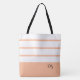 El diseño contemporáneo elegante presenta una mezcla de bandas gruesas y rayas finas en blanco crujiente y melocotón moderno. Agrega dos o tres iniciales monogramadas en letra cursiva negra elegante. El diseño se repite en la parte posterior. Se aceptan solicitudes de colores personalizados.