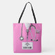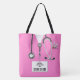 Bolso de regalo exclusivo para enfermeras de temática médica con exfoliaciones de hospital rosadas y un estetoscopio. Editar texto para agregar nombre.