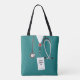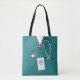 Bolsa única de diseño médico con exfoliaciones verde azuladas en el hospital. Para personalizar, edite el texto para agregar el nombre.