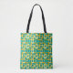 Esta bolsa de tote tiene un diseño moderno de mediados de siglo de rectángulos redondeados con ovales dentro de colores retro de turquesa, verde azulado, blanco roto y oro.