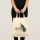 Esta Bolsa tote de Equipo de Novia Pavo Real Elegante presenta un pavo real azul y verde claro dibujado a mano posado en ramas de Magnolia en plena floración en tinta negra y el título "Equipo de Novia". Personalice con su ciudad y fecha haciendo clic en "Personalizar esta plantilla" en la página del producto.