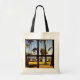 Escena tropical de la playa de Fiji Beach - Fotografía de una playa en las Islas Fiji con palmeras, hamacas y un banco de picnic visto a través de las persianas abiertas de una cabaña de playa. © Alan Harman Photography 2004. Reservados todos los derechos. www.alanharmanphotography.com 120418 tote bag