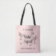 Bolsas de mano de color rosa claro lindas y femeninas para tu fiesta de soltera que presentan bocetos de chicas fiesteras tomando el sol en copas de martini de cóctel, estrellas retro, "Babe Squad" en una escritura retro y los nombres de tus invitadas y la ubicación de la fiesta u otro texto en letra simple y moderna.