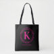Bolsa tote simple personalizada con la inicial de tu monograma rodeada de círculos rosa caliente y tu nombre completo debajo. Ideal para ti, para tus damas de honor, club de lectura, regalo de graduación, regalo de cumpleaños o cualquier ocasión. MÁS colores en nuestra tienda.