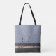 Imagen surrealista del faro de la isla de Bodie visto desde el otro lado de la bahía.