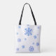 Un tote escarpado de dos lados con un mensaje de Feliz Navidad y una cara de Santa en un lado y copos de nieve cayendo en el otro. Es una preciosa bolsa de dos lados ideal para regalar y también puede ser usada como una bolsa de regalo reutilizable para tote algunos regalos a tus amigos.