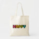 Feliz, una palabra llena de alegría, diseñada con coloridos colores arcoiris.