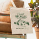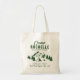 Bolsas de mano para fiesta de despedida de soltera de camping moderno con un dibujo de un campamento con montañas, árboles, una hoguera, una tienda de campaña y una plantilla de texto fácil de personalizar.