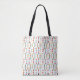 Esta bolsa de tote tiene un diseño moderno de mediados de siglo de flechas hechas de líneas negras y diferentes formas en colores retro de rojo, azul, verde, naranja, oro y gris en un campo de blanco. ¿Quieres el mismo diseño con colores diferentes? Mándame un mensaje.
