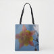 Sobre el hombro, bolsa de tocador con fotografía de una flor de columna contra un cielo azul brillante. Fotografía original de Ray Bean.