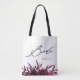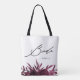 Floral moderna y bonito burdeos con escritura de novia elegante y nombre totebag.
