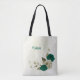 Bella bolsa tote romántica con flores verde esmeralda y beige y algunas hojas .