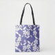 Las flores blancas dibujadas a mano en un fondo peringuil crean un tote de moda. Consulte más productos de coordinación en la colección de flores Periwinkle.