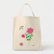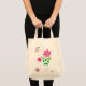 Bolsa de tote de color natural con un diseño floral verde y rosa de bonito a partir de un collage de papel pintado a mano de Judy Adamson.