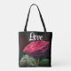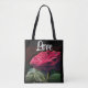 Bolso De Tela Flores rojas de flores verdes de arte negro floral