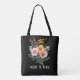 Bolsa de mano personalizada de flores silvestres rosadas y amarillas "Salvaje y Libre". Cambia las palabras a lo que desees, o déjalas como están. Perfecta para despedidas de soltera o como regalo para ella.
