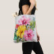 Bolso de mano personalizado con diseño de flores grandes. Impresión total con flores de hibisco rosadas y amarillas. Más florecitas y hojas componen este bonito diseño que tiene un fondo de textura de madera gris claro. Incluye un nombre en el lateral del frente en fuente de letra cursiva elegante. Este bolso está forrado y también viene como bolso cruzado con divisores internos. Este bolso grande sería un regalo maravilloso para las integrantes del séquito nupcial.