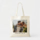 Celebra el amor con un regalo que sea a la vez hermoso y práctico. Esta bolsa de mano de lona de alta calidad presenta una impresión vibrante de la foto de boda favorita de la feliz pareja, lo que la convierte en un recuerdo perfecto para aniversarios, despedidas de soltera o como un "gracias" para el séquito de boda. Duradera, ecológica y única, es una forma elegante de llevar recuerdos queridos a todas partes.