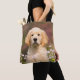 Perrito del golden retriever en un prado de la flor de cuco. Él es un Goldie tan lindo, yo se divertía mucho el tomar de imágenes de él. Los perros perdigueros de oro son perros muy elegantes y leales. Esto por todo la bolsa de asas de las compras de la impresión es una idea del regalo para los amantes del perro y del mascota. Una foto perrito-observada del perrito tomada por Katho Menden. http://www.zazzle.com/kathom_photo