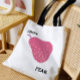 Playful and punny: a bright pink pear with speckled seeds and the cheeky caption “From: Pear.” The bold pop-art look stands out on natural canvas.