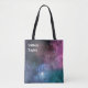 Esta alforja de galaxia ética es perfecta para una mujer moderna y caprichosa. El diseño presenta un colorido fondo cósmico con estrellas y tipografía moderna para un aspecto "fuera de este mundo".