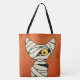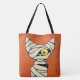 La bolsa de asas impresionante de Halloween que ofrece un gato de la momia del estilo del dibujo animado cubierto con los vendajes con un ojo amarillo enorme y una demostración rosada linda de la nariz. ¡Perfeccione para el uso como bolso del truco o de la invitación por todas las edades! Diseñe el © Lisa Marie Robinson de los derechos reservados