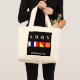 ¡Ahoy, allí! Aquí está su bolso personalizado para el canotaje o el cruzar, la playa, o apenas todo alrededor de la ciudad, con Ahoy deletreado hacia fuera en banderas de señal marítimas internacionales. ¡Añada su nombre, y usted está listo para ir!