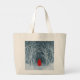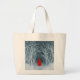 Pequeña Caperucita Roja en un invierno nevado caminando por el bosque. ¿Puedes ver al Gran Lobo Malo aullando a la distancia? Una versión borrosa de una pintura acuarela negativa.